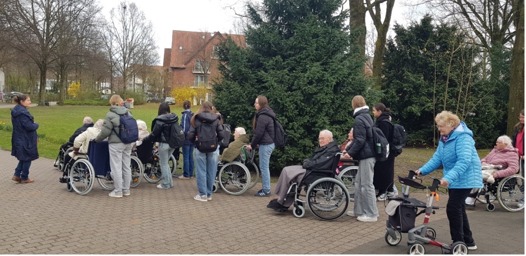 Im Rahmen des Ergänzungsunterrichtsfachs „Pädagogik und Soziales“ haben unsere Schülerinnen und Schüler der Jahrgangsstufe 10 regelmäßig auch in diesem Schuljahr die Bewohnerinnen und Bewohner des Caritas-Hauses St. Anna besucht und abwechslungsreiche Aktionen mit ihnen durchgeführt. Initiiert durch die Volksbank-Stiftung erfolgt dieses Projekt durch eine Kooperation der Gesamtschule Verl mit dem Caritas-Haus St. Anna und hat dabei das Ziel, den Austausch zwischen den Generationen zu fördern sowie voneinander zu lernen.