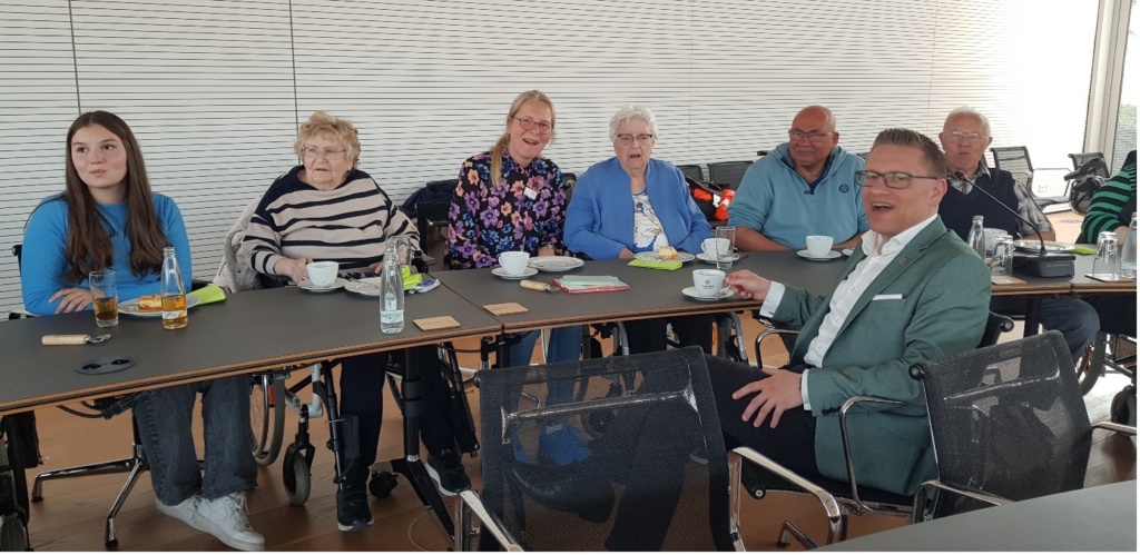 Am 9. April waren unsere Schülerinnen und Schüler sowie die Bewohnerinnen und Bewohner des Caritas-Hauses St. Anna zu Gast im Ratssaal. Besonders spannend war für alle dort zu sitzen, wo normalerweise politische Debatten stattfinden, und durch den Bürgermeister Herrn Rieksneuwöhner mit wertschätzenden Worten empfangen zu werden.